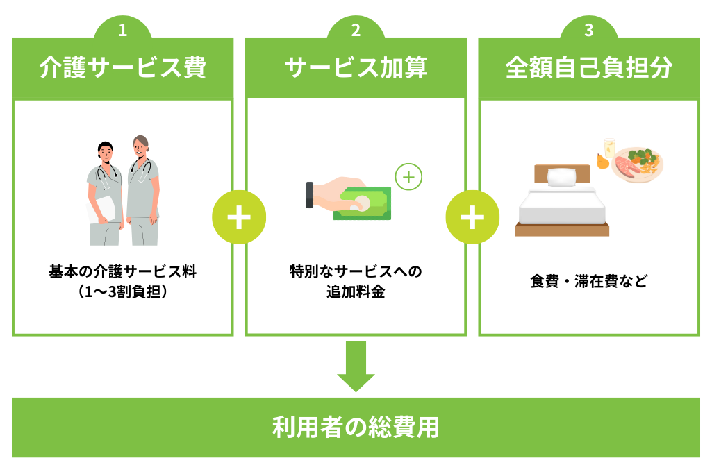 ショートステイの利用料金は、主に以下の3つの合計で決まります。