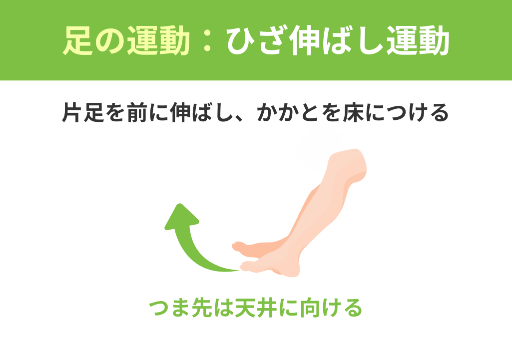 椅子に深く座り、片足のひざをゆっくりと伸ばしていきます。ひざが伸びきったところで数秒間静止し、ゆっくりと元の位置に戻します。この時、つま先を天井に向けるように意識すると、太ももの前の筋肉(大腿四頭筋)にさらに効果があります。左右交互に行いましょう。