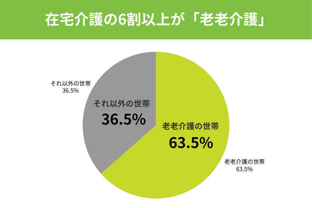 老老介護は、もはや特別な家庭環境ではなく、非常に一般的なものになっています。厚生労働省の2022年の調査によると、在宅介護を行っている世帯のうち、介護者と要介護者がともに65歳以上である「老老介護」の世帯は、全体の63.5%にも上ります。 これは、在宅介護の半数以上が老老介護であることを示しており、日本の高齢化社会における重要な課題となっています。