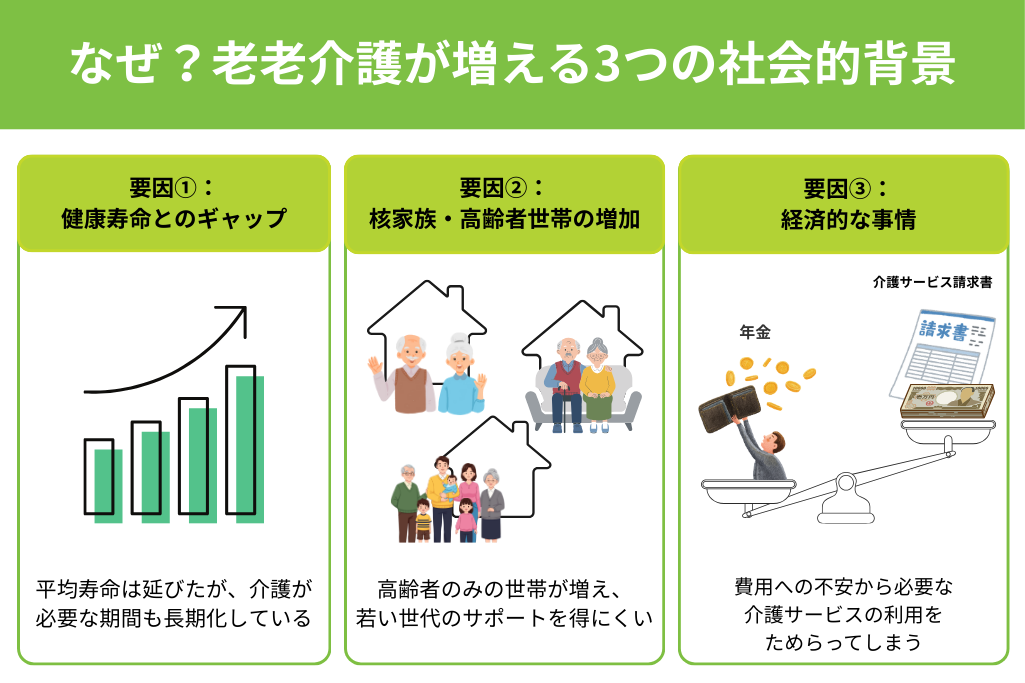 どうしてこれほどまでに老老介護は増加しているのでしょうか。その背景には、日本の社会構造の変化が深く関わっています。