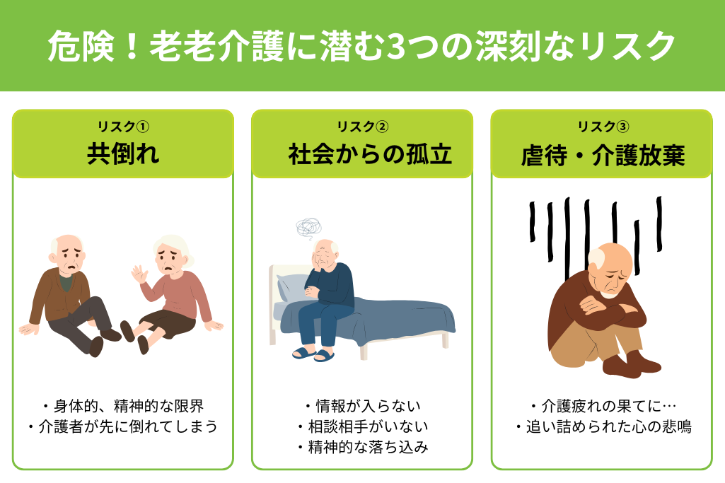 老老介護は、介護する側とされる側の双方にとって、多くのリスクをはらんでいます。どのような問題点があるのかを具体的に知っておくことで、早めの対策につながります。