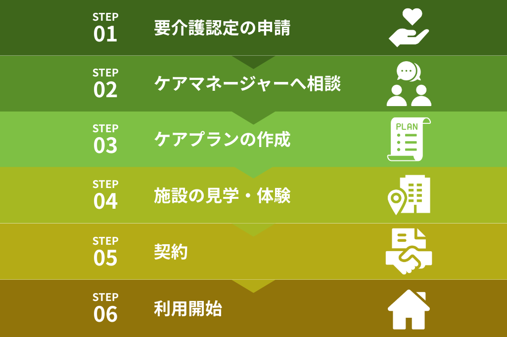 デイサービスを利用するには、まず要介護認定を受けていることが前提です。その後の一般的な流れは以下の通りです。